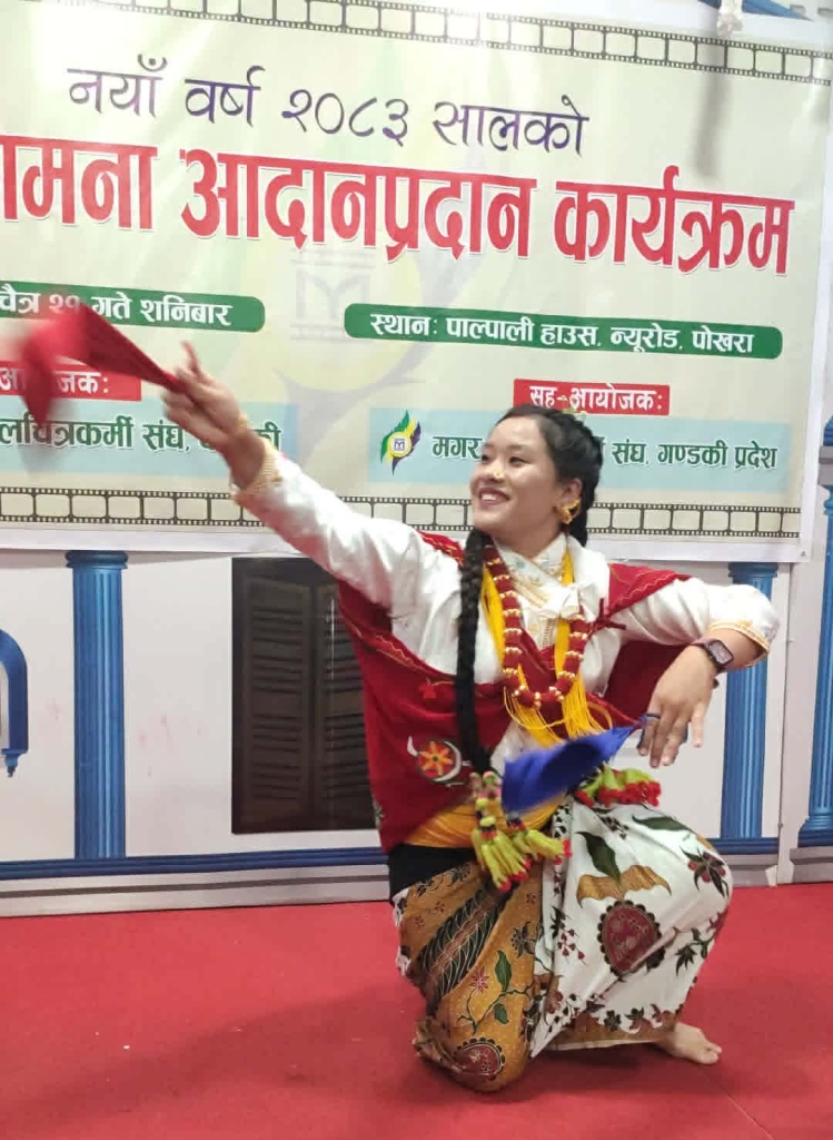 कास्की जिल्लामा क्रियाशील मगर चलचित्रकर्मीहरुको साझा संस्था मगर चलचित्रकर्मी संघले नयाँ वर्ष २०८३ को आगमनको पूर्वसन्ध्यामा शुभकामना आदानप्रदान कार्यक्रम गरेको हो । प्रमुख अतिथि मगर चलिचित्रकर्मी एवं साहित्यकार मेजन पुन मगरले कार्यक्रमको उद्घाटन गर्नुभएको थियो ।